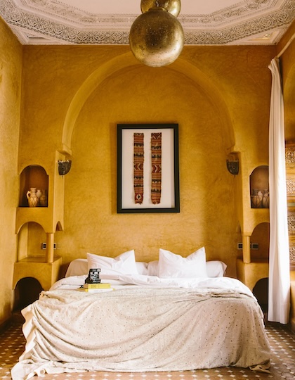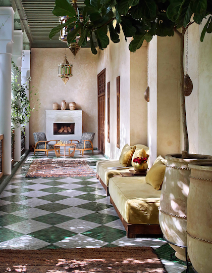 The courtyard, left, and the Annex room at El Fenn | Photo credits: Cécile Treal Couloir, Kasia Gatkowska